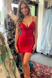 Bodycon Fuchsia V-Neck Corset Satin Homecoming Dress