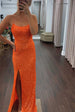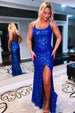 The elegant royal blue mermaid prom dress features spaghetti straps and high slit. Inexpensive but Good Quality.