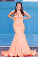 Elegant long prom dress features halter neckline, mermaid silhouette and tie back. Inexpensive but Good Quality.