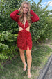 Plunging Neck Sky Blue Sequin Side Cutout Short Homecoming Dress