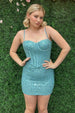 Sparkly Bodycon Spaghetti Straps Short Beaded Homecoming Dress