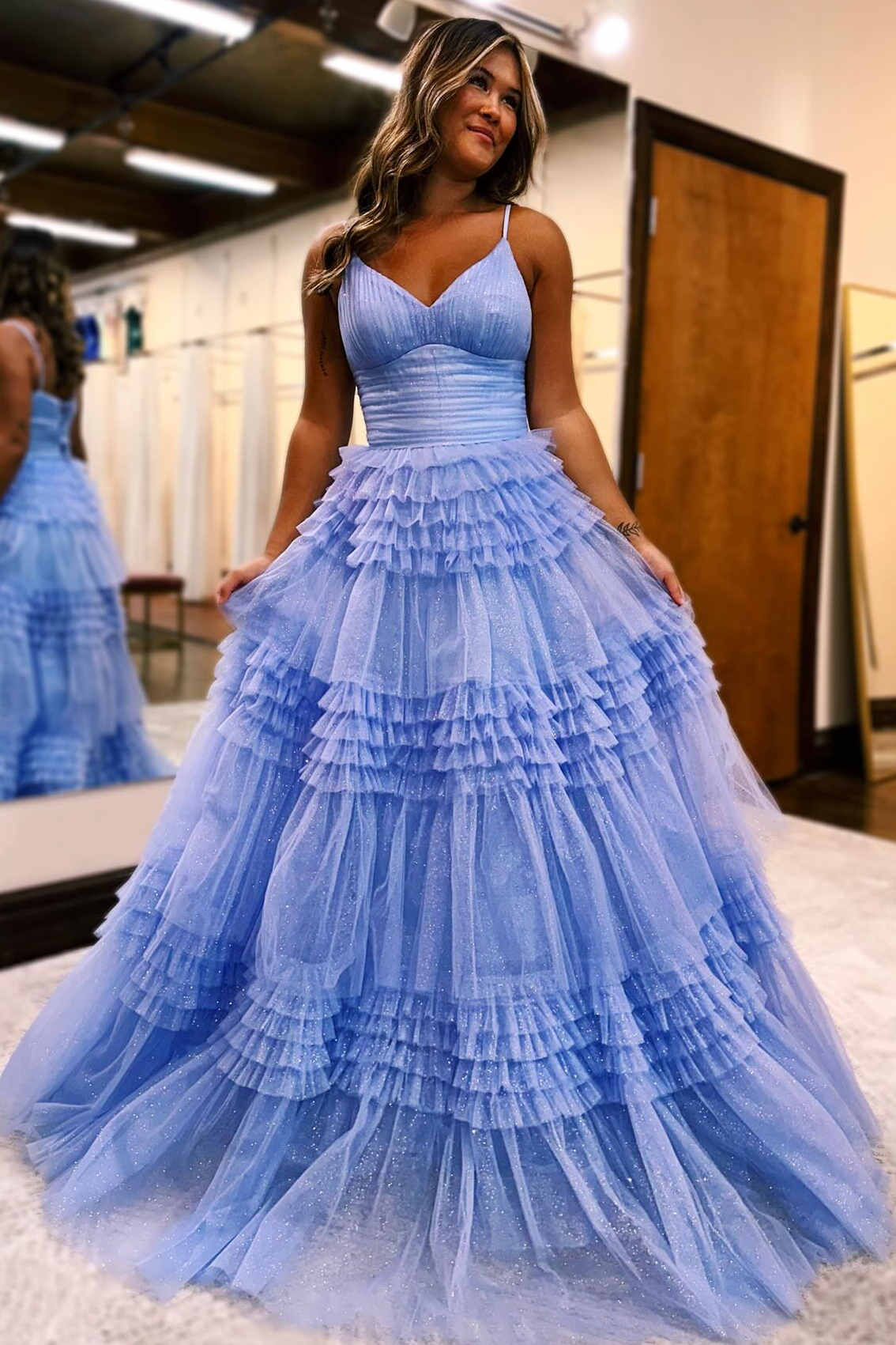 The v-neck and straps flatter the figure while the pleated bust creates a sophisticated look. A layered tulle skirt adds softness, giving the dress a timeless elegance. This a-line black pom gown is perfect for your special day.