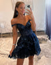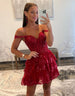 Stunning A-Line Off The Shoulder Tiered Glitter Homecoming Dress With Appliques