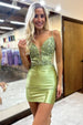Stunning Sage Green Spaghetti Straps Short Satin Homecoming Dress With Appliques