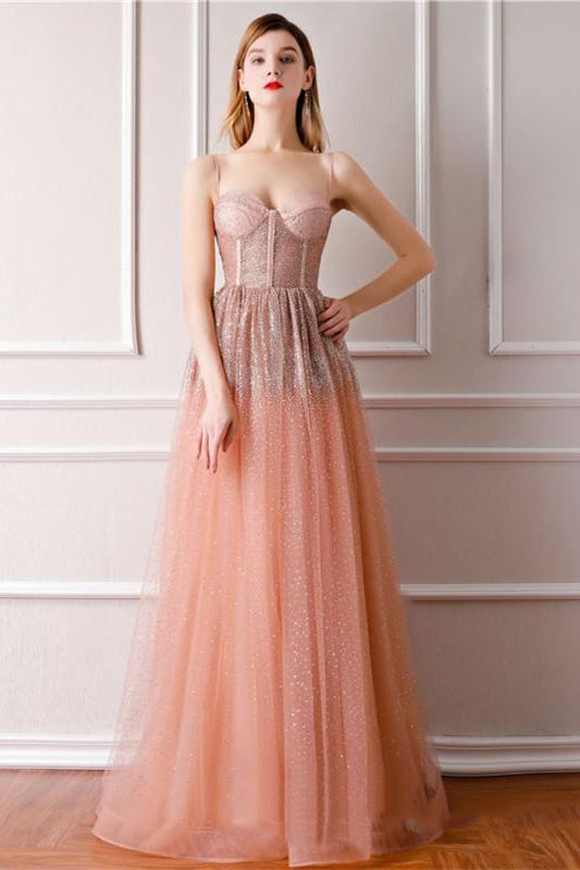 This elegant a-line long prom dress features spaghetti straps and zipper back. Our dresses have a good quality, but Inexpensive.