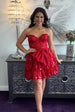 Immerse yourself in luxury with our breathtaking Sweetheart Black Appliques Ruffle Short Dress. Elegant Tulle material, a classic Sweetheart neck, and a delicately tiered ruffle skirt with a charming bow on the side elevate this dress to a work of art. Featuring a stylish above knee length and a sleek zip-up back, this dress exudes sophistication and exclusivity.