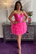 Indulge in the luxurious Teal hue of this A-line dress, crafted from delicate Tulle and featuring a sophisticated Sweetheart neckline. The Tiered ruffle skirt adds an elegant touch, falling gracefully above the knee. Complete with a Zip-up back for easy wearing.
