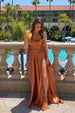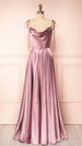 This elegant a-line long prom dress features tie straps and high slit. Our dresses have a good quality, but Inexpensive.