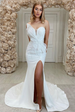 Modsele white long wedding dress fetures with strapless sweetheart neckline, exquisite beading and bow at front, and mermaid-style train with sweeping hem and slit.