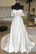 A stunning selection for the most special day of your life, this White Satin Off-the-Shoulder Appliques Long Wedding Dress is a timeless beauty! The gorgeous satin fabric and floral appliques create a look of pure sophistication. With the perfect A-Line cut, romantic off-the-shoulder design, and sweeping train, you'll be a vision on your big day!